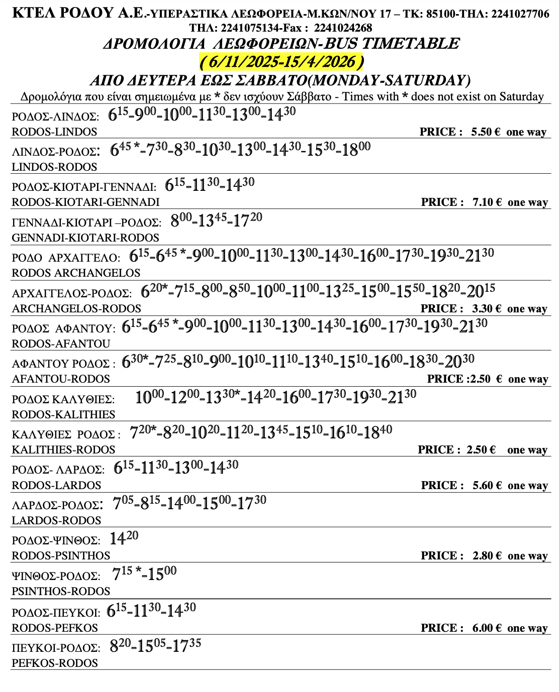 Pokud jste se rozhodli, že si na Rhodosu nebudete půjčovat auto, budou se Vám hodit aktuální jízdní řády autobusů.